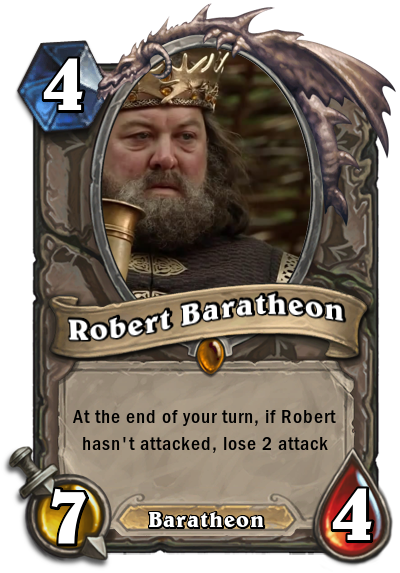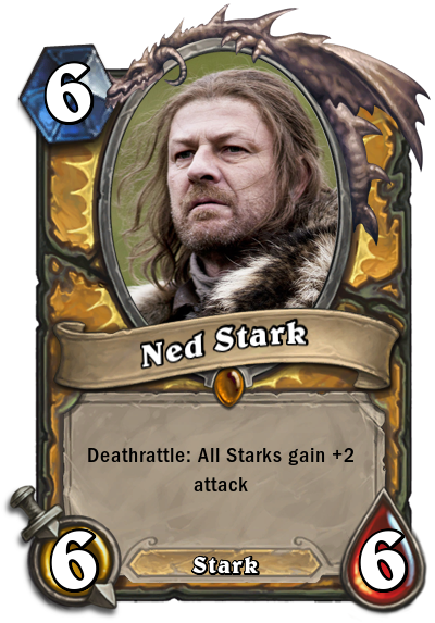 The best videogame treatment we can think of so far is the Crusader Kings II - Game of Thrones total conversion mod, which allows you take control of the families from the series and guide them through history, albeit a few hundred years before the events that transpire in the books/TV show. Anyway, here's that Hearthstone deck: