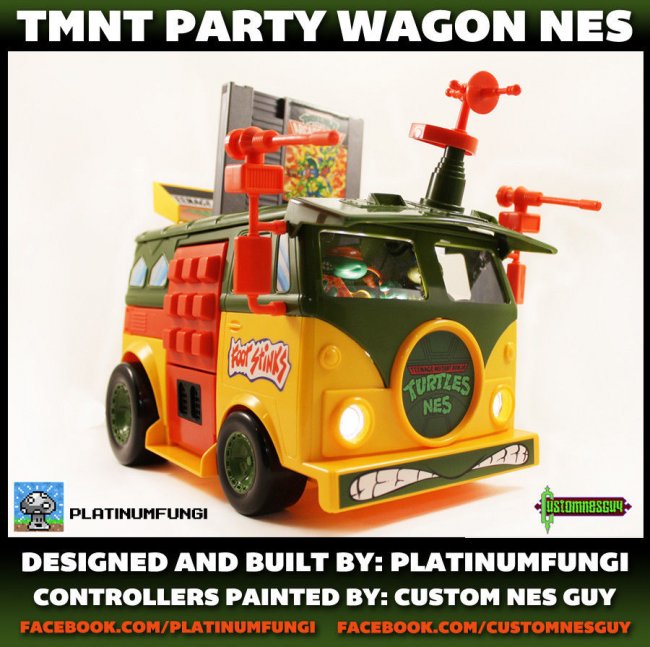 And of course it's something really extra about it. It is famous modder Ryan Fitzpatrick, better known on the internet under the handle Platinumfungi, that has outdone himself by nicely building a fully functional NES into the classic Ninja Turtles party wagon. It even has details like Leonardo at the wheel while Michelangelo sits shotgun, eating a pizza - with cabin lights (that can be turned on even without starting the console). Fortunately, the wheels are locked so no risk that this master piece should roll of your shelf while you are playing.