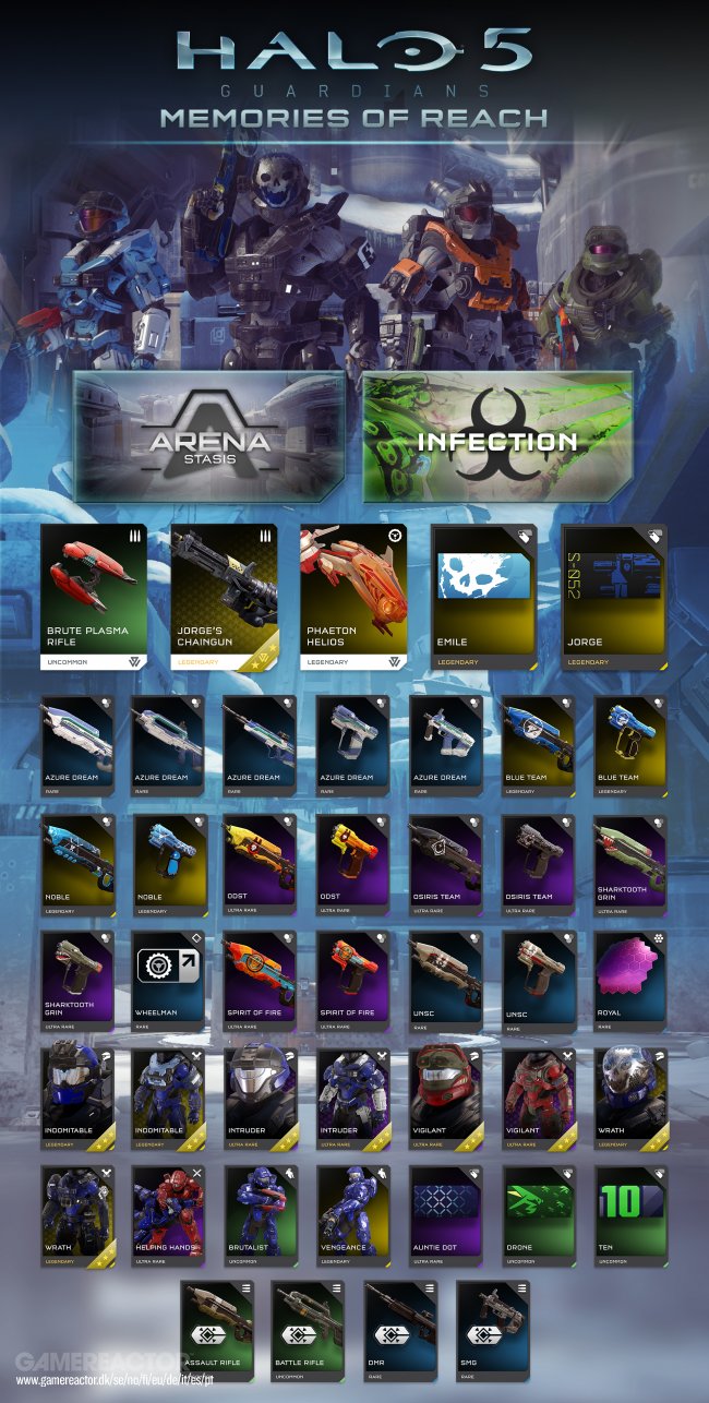 Finally, 343 Industries has posted an infographic showing all new REQs available in this expansion, and all members of the Noble Team are represented. Take a look below, and tomorrow night at 11:00pm BST (00:00 CET), there'll be a livestream on the Halo Twitch channel showing off Memories of Reach in action.