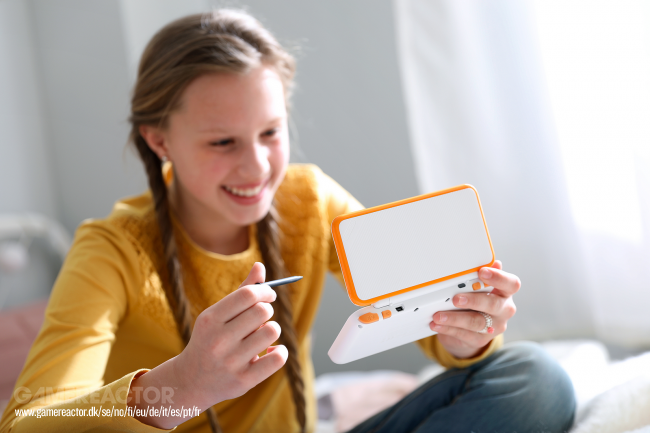 The Nintendo 2DS XL has just been announced as of today, and we've provided you with a gallery of pictures that includes both official clean hardware shots and 'lifestyle' pictures of the new console. Even if it's boys who are usually playing the black and blue model, here at Gamereactor the boys are loving the white and orange.