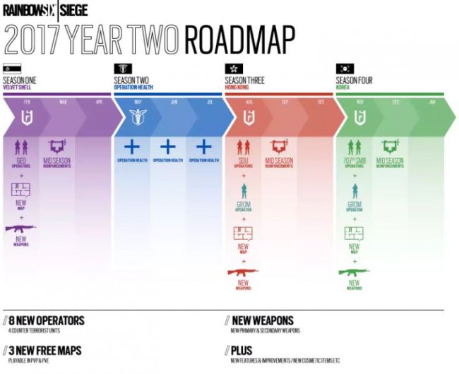 What this means is that the season revolving around Hong Kong, season 2, is being pushed back to accommodate these plans, which "is all about fixing several issues and investing in better technology to make sure we keep growing strong in the upcoming years." With Hong Kong being pushed back, the whole Year 2 roadmap is being reevaluated, so Hong Kong will be coming in August as part of Season 3, and South Korea coming in November in Season 4. The eagle-eyed among you will have noticed that this pushes Poland out of Season 4, but Ubisoft has said that the GROM operators will be released at the start of both Seasons 3 and 4.