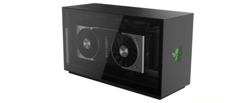 The Razer Tomahawk Gaming Desktop is the Razer version of Intels NUC 9 Extreme computing platform. Its compact, although not the most compact NUC 9 product, but unlike other NUC based computers, this actually allows full-size graphics cards.